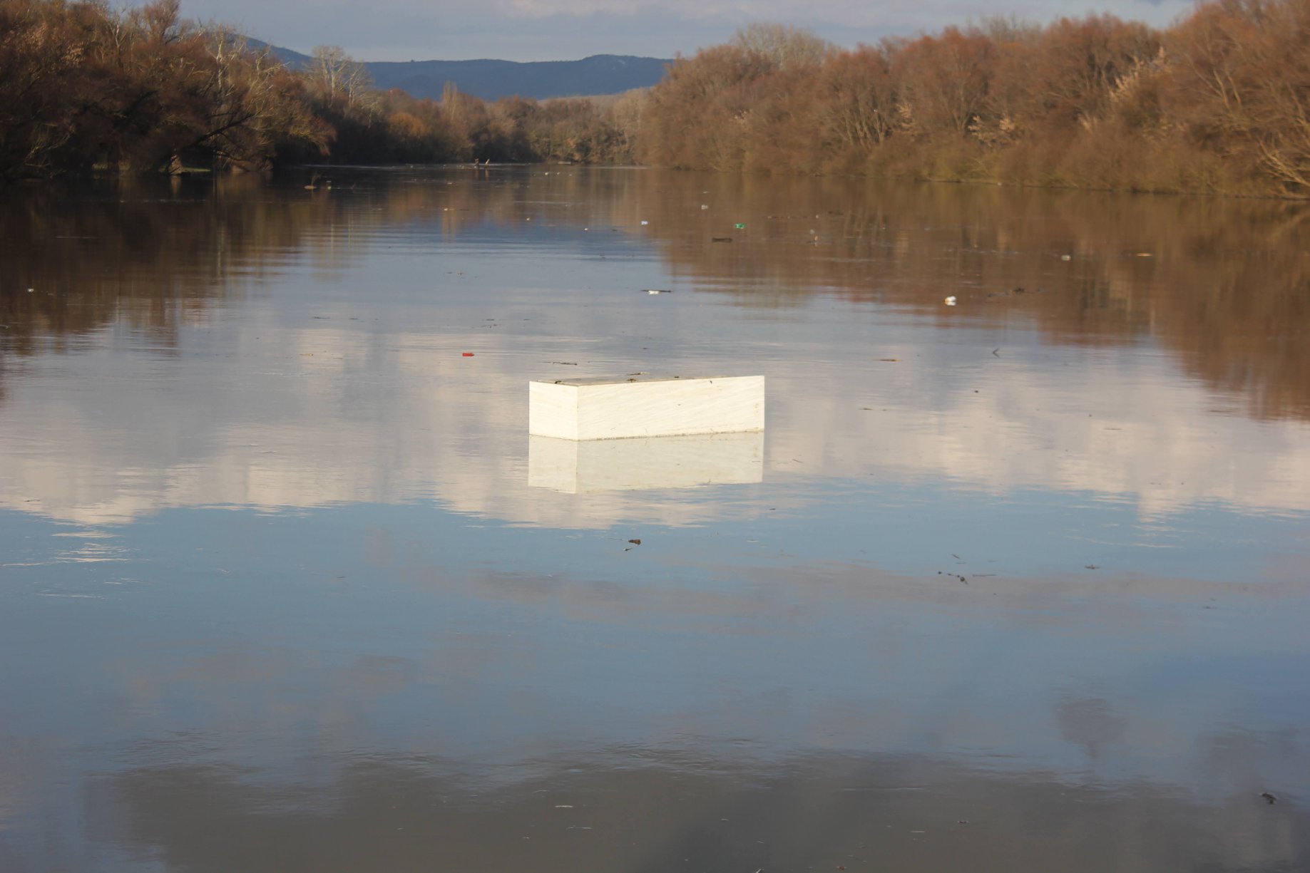 route. In the picture, a fridge floats on river Bodrog.