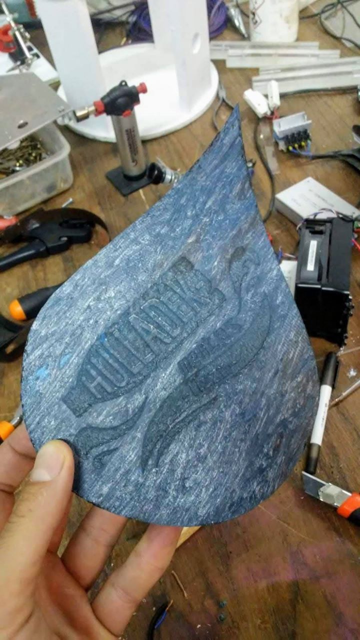 He liked the result so much, that he offered to engrave something in it. Miki, a project manager of the Plastic Cup immediately conjured an artwork, and a less powerful laser ray carved the graphics on the surface of the plastic sheet. Now we only needed to find a base for the award.