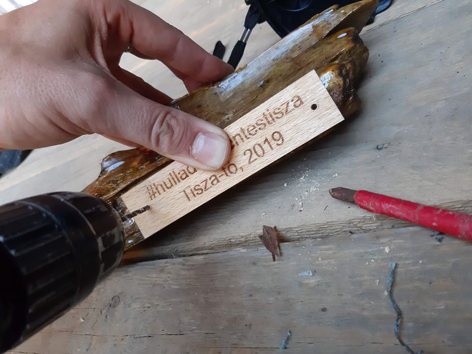 So we had the material for the award – a plastic sheet made from river-borne waste. But how can we cut a pretty droplet shape out of it, like the one I saw in Scotland? I tried with a hand-saw but I failed. The material was thicker and harder than wood. An entrepreneur from Budaörs helped us out and cut the required form with a strong laser ray.