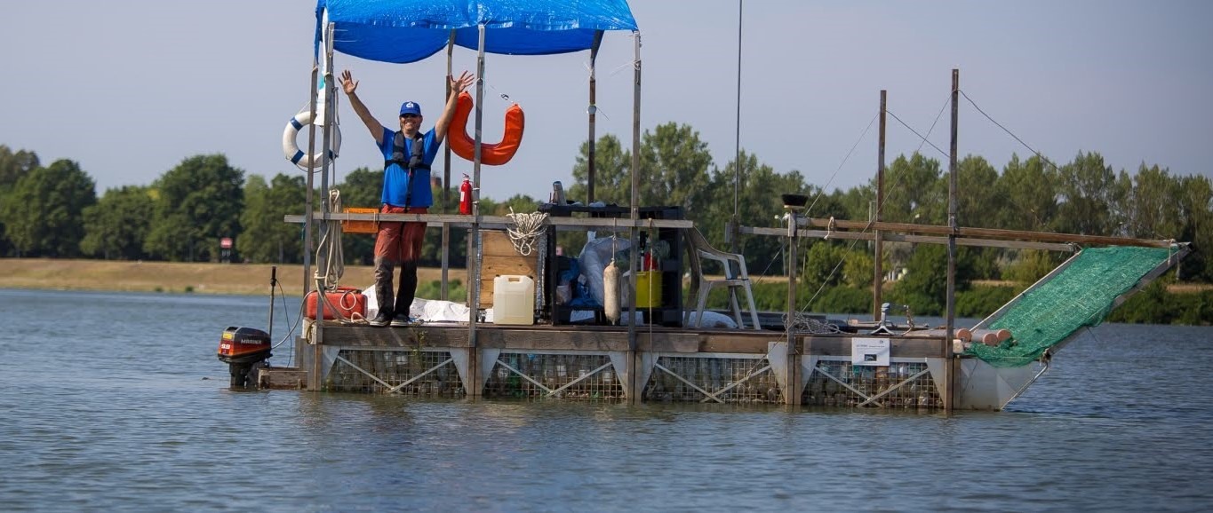 The paddlers reached the mothership. Uplifting music sounded from one of the canoes, possibly from a water resistant stereo. Good to know that those machines do not float, they sink immediately. It was the first time that the canoeists, sitting proudly in their yet squeaky clean T-shirts, saw a ship made from plastic waste. PETényi was held up by thousands of plastic bottles, and its burden was more than a tonne. Fortunately, the wind was favourable, and it looked as if I was staying in the middle of the water on purpose. I smiled, waved, and showed them which direction they had to row to reach the contaminated areas. And then I simply drifted away.