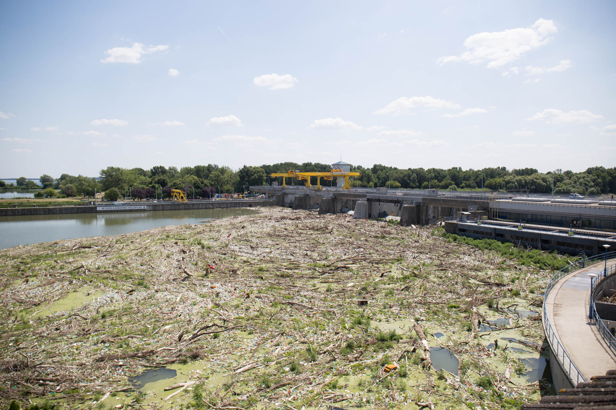 A Kiskörei vízlépcső felvízi oldalán ebben az évben feltorlódott kommunális hulladékkal kevert uszadék mennyisége, - a hosszú gyülekezési idő miatt - minden eddiginél nagyobb. A vízből kiemelt és partra kirakott nagy mennyiségű anyag elhelyezéséhez és válogatásához a kiskörei téli kikötőben kialakított rakodótér kibővítése vált szükségessé. A vízlépcsőnél megrekedt szilárd kommunális és szerves hulladék kitermelése az évek során bevált módszerrel, úszó-rakodó munkagéppel történik, az általa megpakolt 200 tonnás uszályt pedig a Jégvirág VII. jégtörőhajó vontatja a KÖTIVIZIG Kiskörei Szakaszmérnökségének üzemi (téli) kikötőjébe. A korábbi évek vízminőségi kárelhárítási időszakainak tapasztalatai alapján a becsült felszíni uszadék kitermelése előreláthatólag legalább 4 hónapot vesz igénybe.