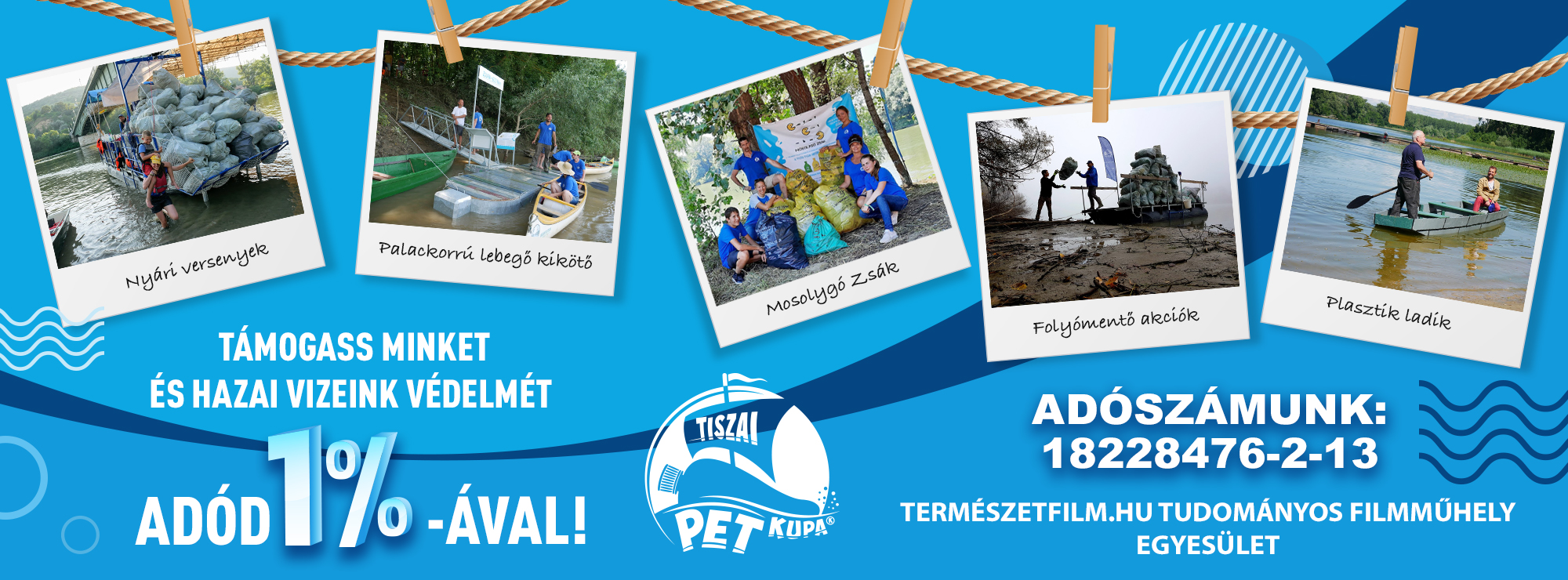 Személyi jövedelemadód 1%-ának felajánlásával Te is hozzájárulhatsz a PET Kupa sikereihez. Folyóvizeink védelmében eddig összesen 156 tonna hulladékot távolítottunk el a Tiszából és árteréből.